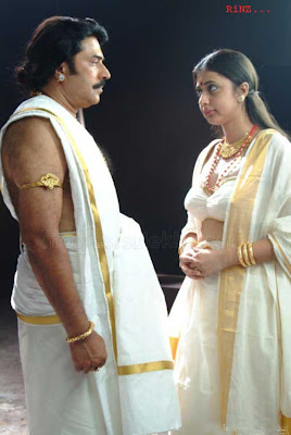 Mammootty plays Pazhassi Raja, while Kaniha is doing the role of his wife, Kaitheri Makkom. The star cast also includes Sarath Kumar, Suman, Padmapriya [ Images ], Thilakan, Jagathy Sreekumar and a few foreign actors.